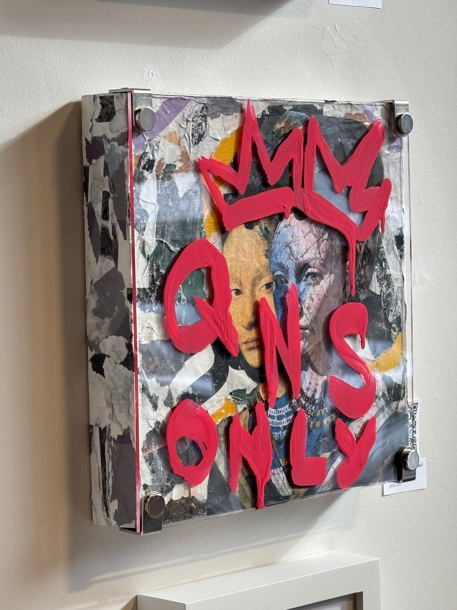 Mixed media on wood panel with vandalized plexiglass 10”x10”x1.5”